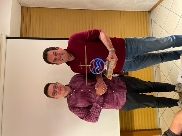 Jugendleiter Jan Schäfer gratuliert Daniel Bannert zum "Jugendpreis 2.0"